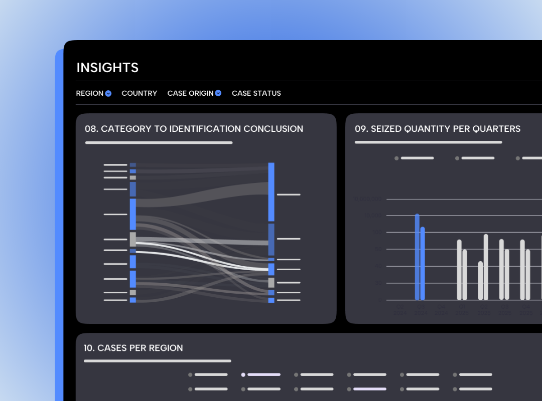 We empower your team to work smarter and focus on making an impact. Our digital workspace allows Brand Protection Teams, Legal Teams & Investigators to streamline, automate, & improve productivity in their everyday work against trademark infringements, counterfeits, grey market & pirated goods.